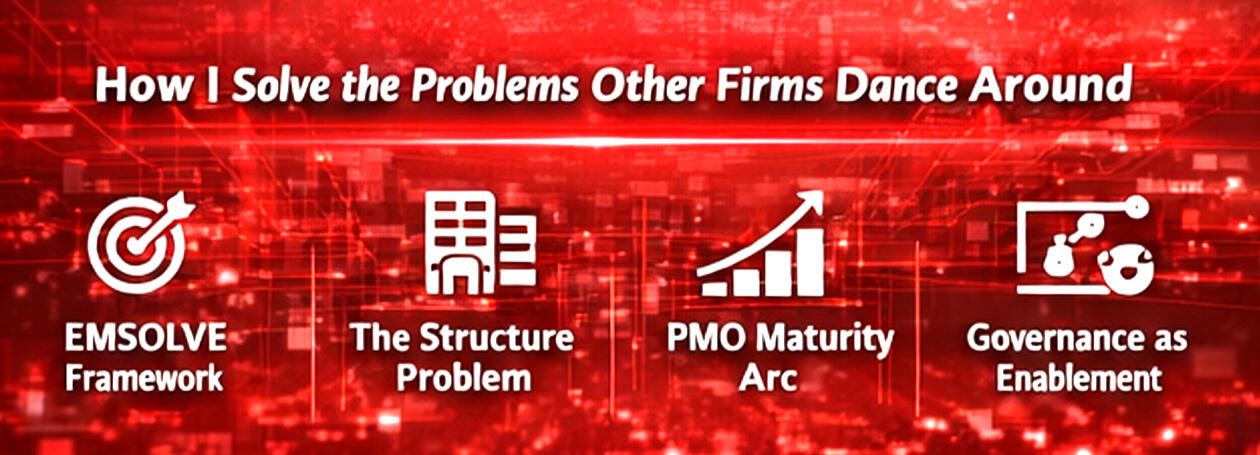I bring enterprise‑grade leadership across HR, IT, Operations, and L&D and I don’t waste time with academic PMO theory. I build systems that work in the real world.